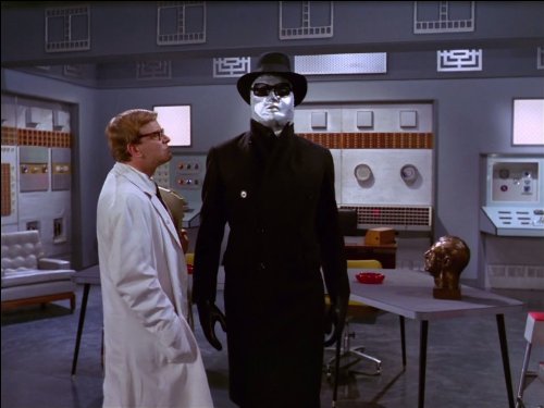 Never, Never Say Die: The Avengers “are needed” after reports that a motorist has repeatedly run over and supposedly killed the same person. Their investigations lead them to the country and the top secret Neoteric Research Unit, which is run by the appropriately-named Dr. Frank N. Stone, who has made a startlingly life-like robot of himself, so much so that Steed finds it hard to tell the two Stones apart.