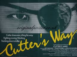 “Cutter’s Way” (1981) Drama Running Time: 109 minutes Written by: Jeffrey Alan Fiskin based on Cutter and Bone by Newton Thornburg Directed by: Ivan Passer Featuring: Jeff Bridges, John Heard, Lisa Eichhorn and Ann Dusenberry Alex Cutter: “I watched the war on TV like everybody else. Thought the same damn things. You know what you thought when you saw a picture of a young woman …